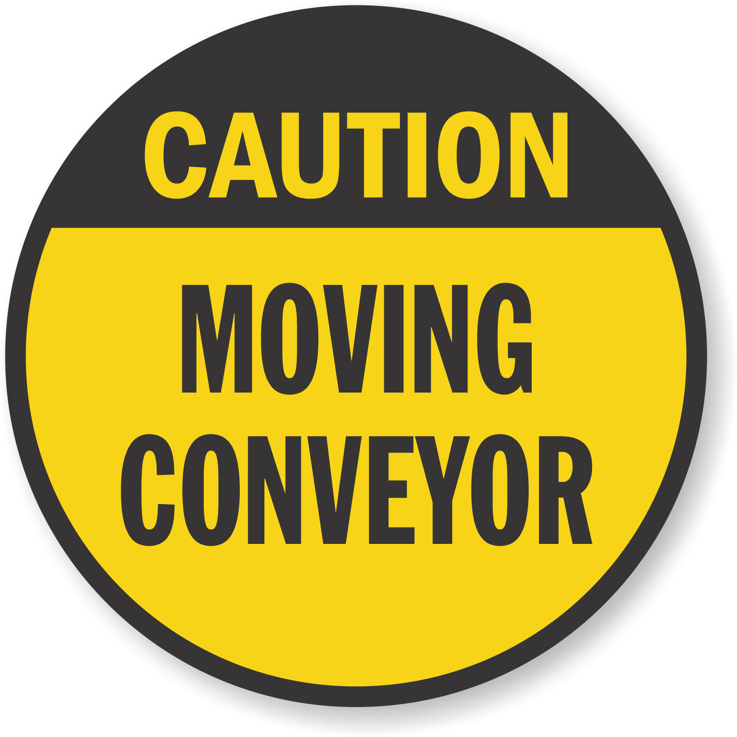 SlipSafeâ„¢ Circular Anti-Skid Floor Sign: Caution - Moving Conveyor