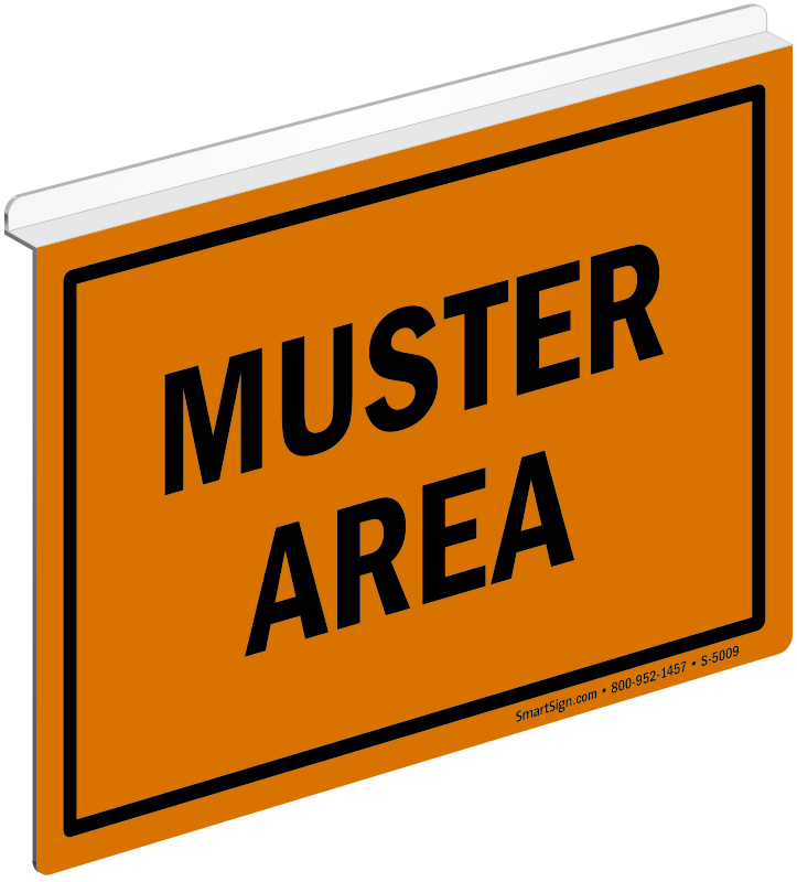 This Z-Projecting Fire Safety sign will mark the muster area of your building for people to gather in case of an emergency.