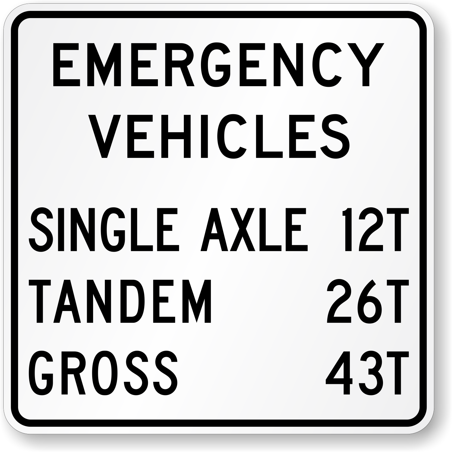 MUTCD Compliant Sign: Weight Limit - Emergency Vehicles (Plaque) X-R12-7AP