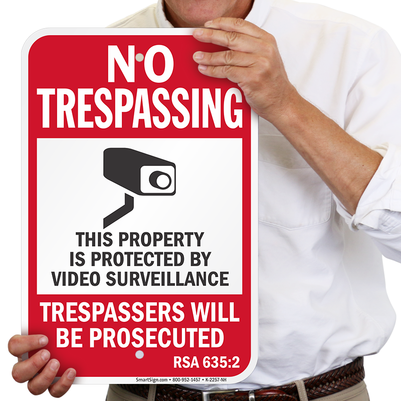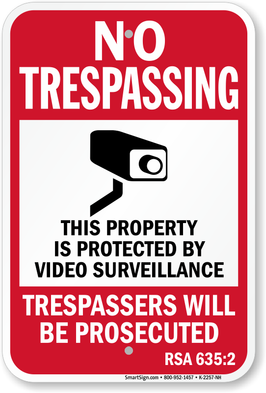 New Hampshire No Trespassing Sign: This Property Is Protected By Video Surveillance, Trespassers Will Be Prosecuted – NH RSA § 635.2 K-2257-NH Learn More...