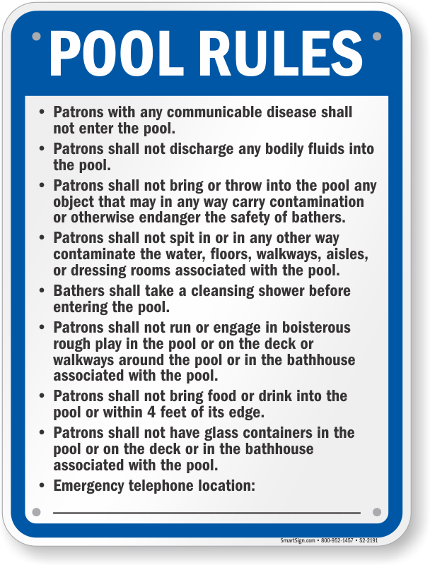 New Hampshire Pool Sign: Pool Rules S2-2191 Learn More...