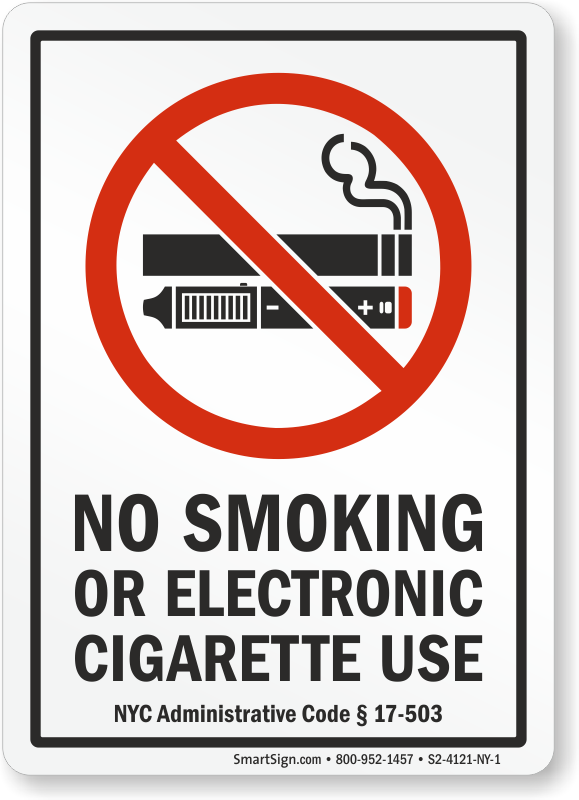New York City No Smoking Sign helps you comply with NYC Administrative Code § 17-503. Black lettering is 1 inch in height and the symbol is 7 inches in diameter.