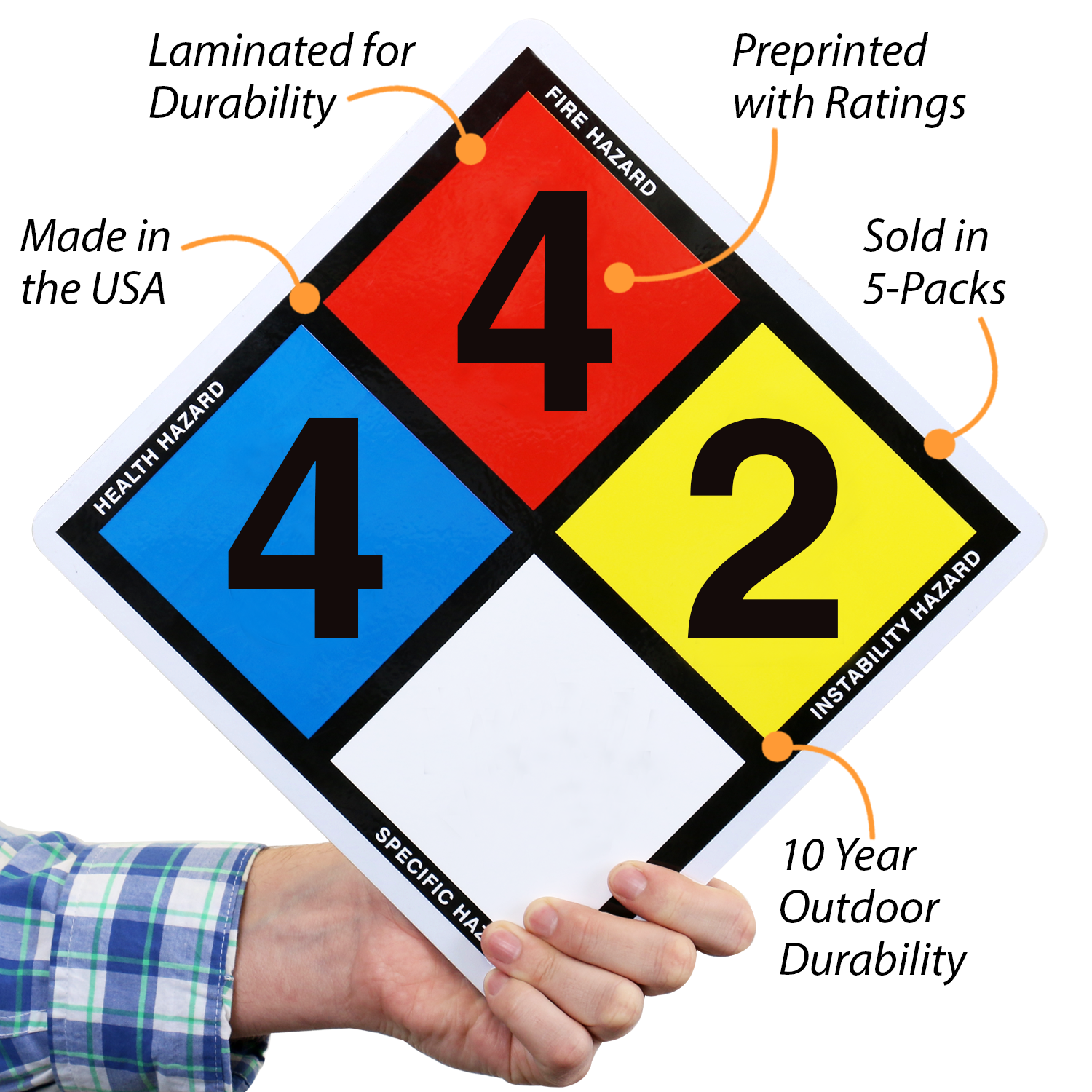 NFPA signs alert first responders to chemical hazards. This sign features a blue health hazard of 4 indicating deadly. Red 4, indicates flash point is below 73 degrees and yellow 2, indicates violent chemical change.