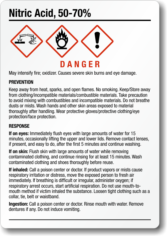 Communicate comprehensive chemical information about Nitric Acid to workers and comply with GHS standards.