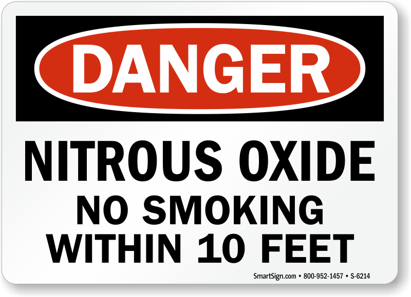 Use this OSHA Danger Sign to keep all workers informed about Nitrous Oxide in your facility and clearly state that smoking within 10 feet is prohibited.