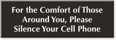 Select-a-Color Engraved Sign: For The Comfort Of Those Around You, Please Silence Your Cell Phone SE-2528