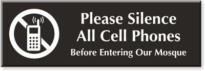 Select-a-Color Engraved Sign: Please Silence All Cell Phones, Before Entering Our Mosque (with Graphic) SE-2562