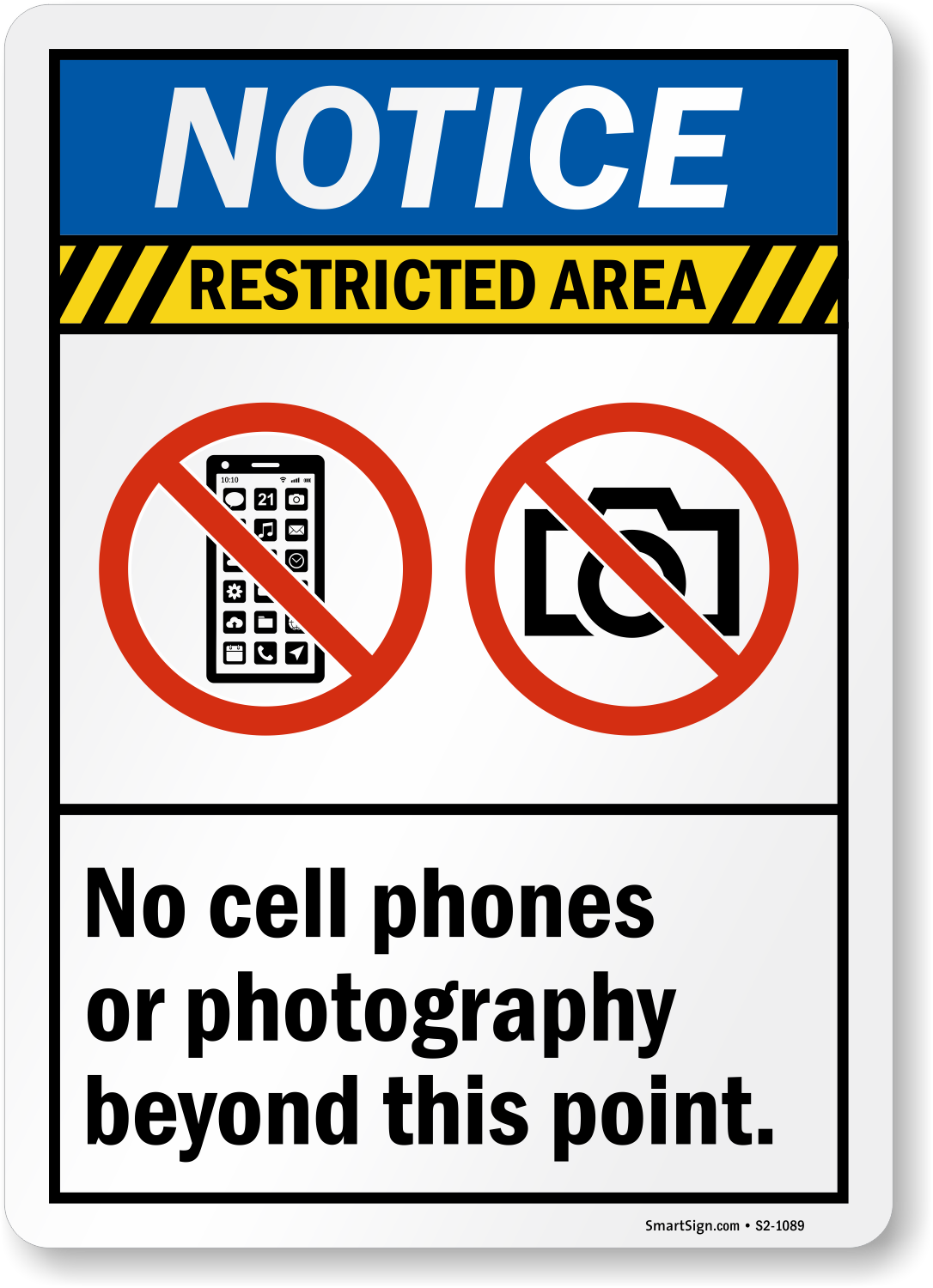 Put this ANSI Notice Sign at a conspicuous location to inform visitors not to carry their cell phones or click pictures in the restricted area of your property.