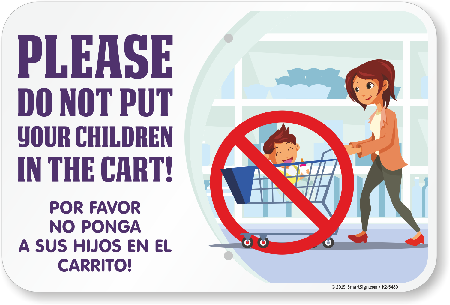 No Children in Shopping Cart Bilingual Sign: Please Do Not Put Your Children in the Carts. Por Favor No Ponga A Sus Hijos En Los Carritos Learn More...