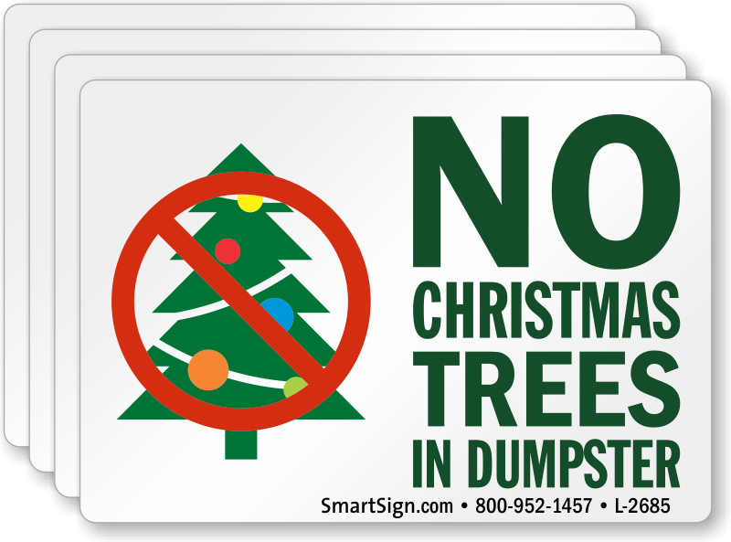 Most trees catch fire quickly and therefore should not be dumped with regular waste. Place this label on bins to prevent people from discarding Christmas trees in dumpsters. Tear proof label with aggressive adhesive sticks easily to any smooth and clean surface, and does not come off.
