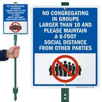 LawnBoss® Sign & Stake Kit: No Congregating In Groups Larger Than 10 And Please Maintain A 6-Foot Social Distance From Other Parties K2-5761 Learn More...