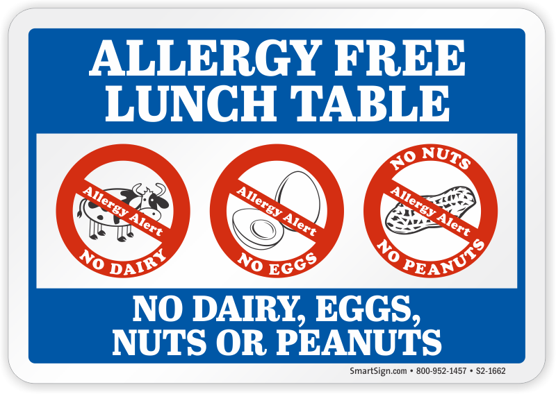 Peanut Allergy Safety Sign: Allergy Free Lunch Table - No Dairy, Eggs, Nuts Or Peanuts