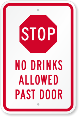 Stop Sign: No Drinks Allowed Past Door K-5292 Learn More...
