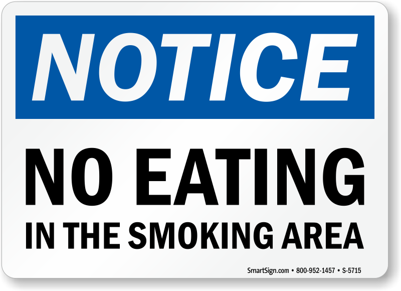 OSHA Notice Sign: No Eating In The Smoking Area S-5715