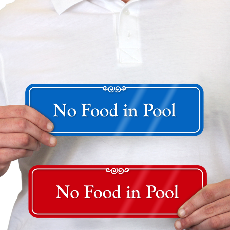 Food spills can make your pool area messy and unhygienic. This elegant No Food Pool Rules ShowCase Wall sign keeps your pool area clean and your patrons happy.