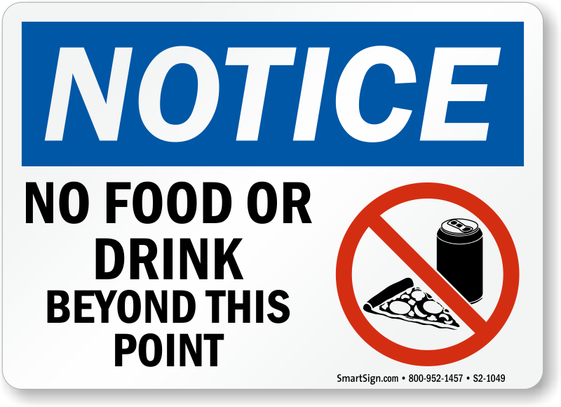 Inform your staff and visitors not to carry food or drink beyond specified area with this OSHA Notice Sign.