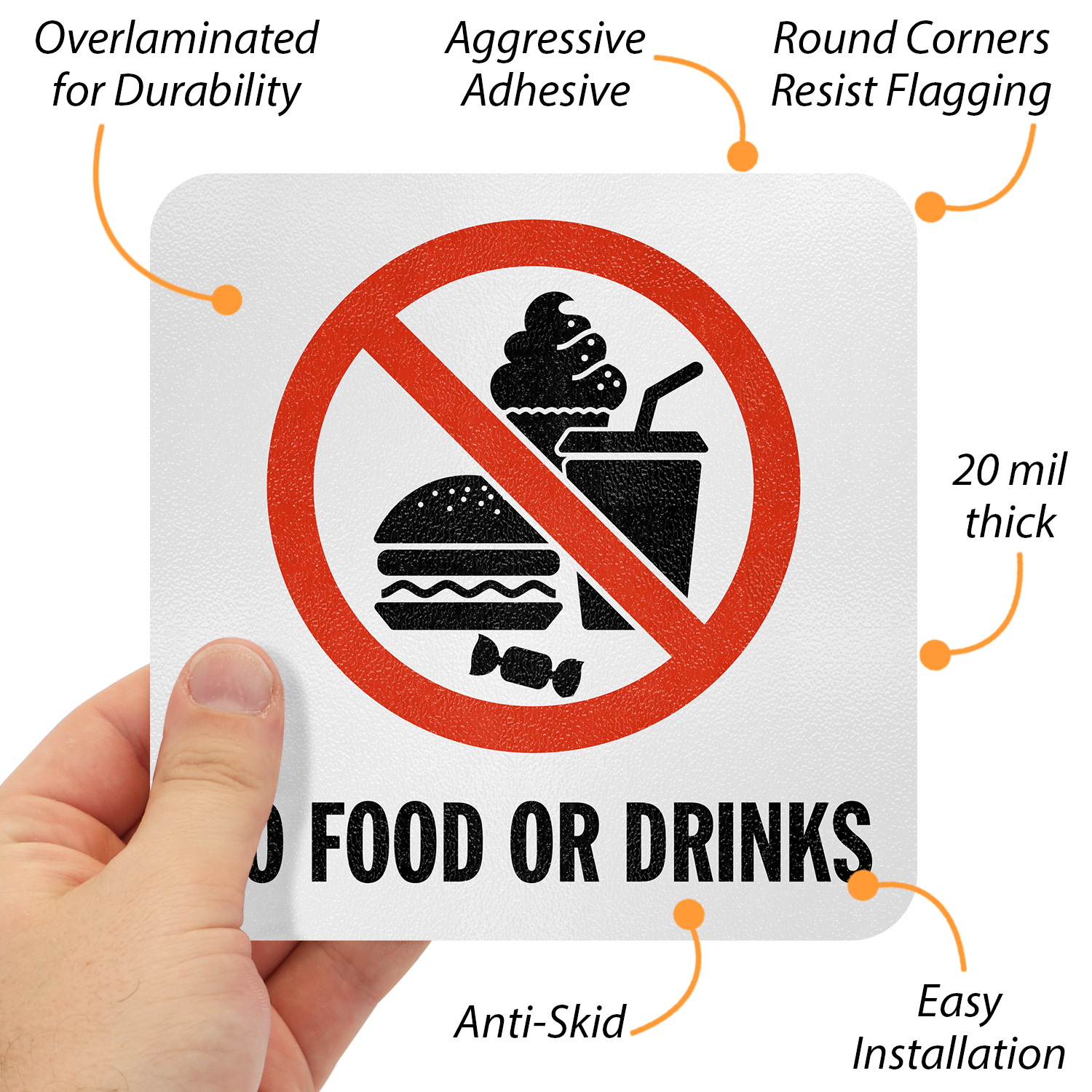 No need of any signpost or wall. This 'No Food or Drinks' Safety Pool Marker can be applied directly to the pool deck or any other flat surface.