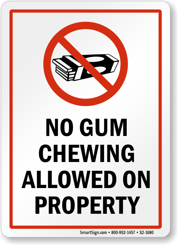 No Chew Gum Sign: No Gum Chewing Allowed On Property S2-1680