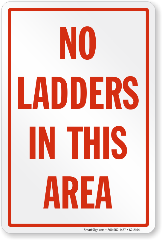 A bold red and white sign grabs attention from afar. Install this vertical sign in conspicuous location to ensure no ladders in mentioned area.