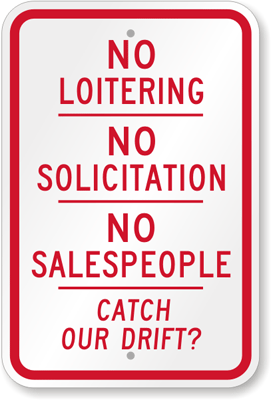 No Loitering Sign: No Soliciting, No Salespeople Catch Our Drift? K-7043