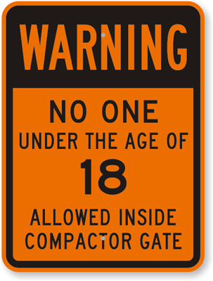 Quick, clear, and to-the-point - No One Under Age of 18 Allowed Inside Compactor Gate Sign leaves no room for confusion. Simple language conveys your message clearly and effectively.