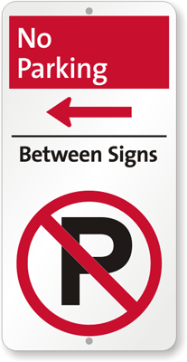 iParking Sign: No Parking Between Signs (with Left Arrow and No Parking Symbol) Learn More...