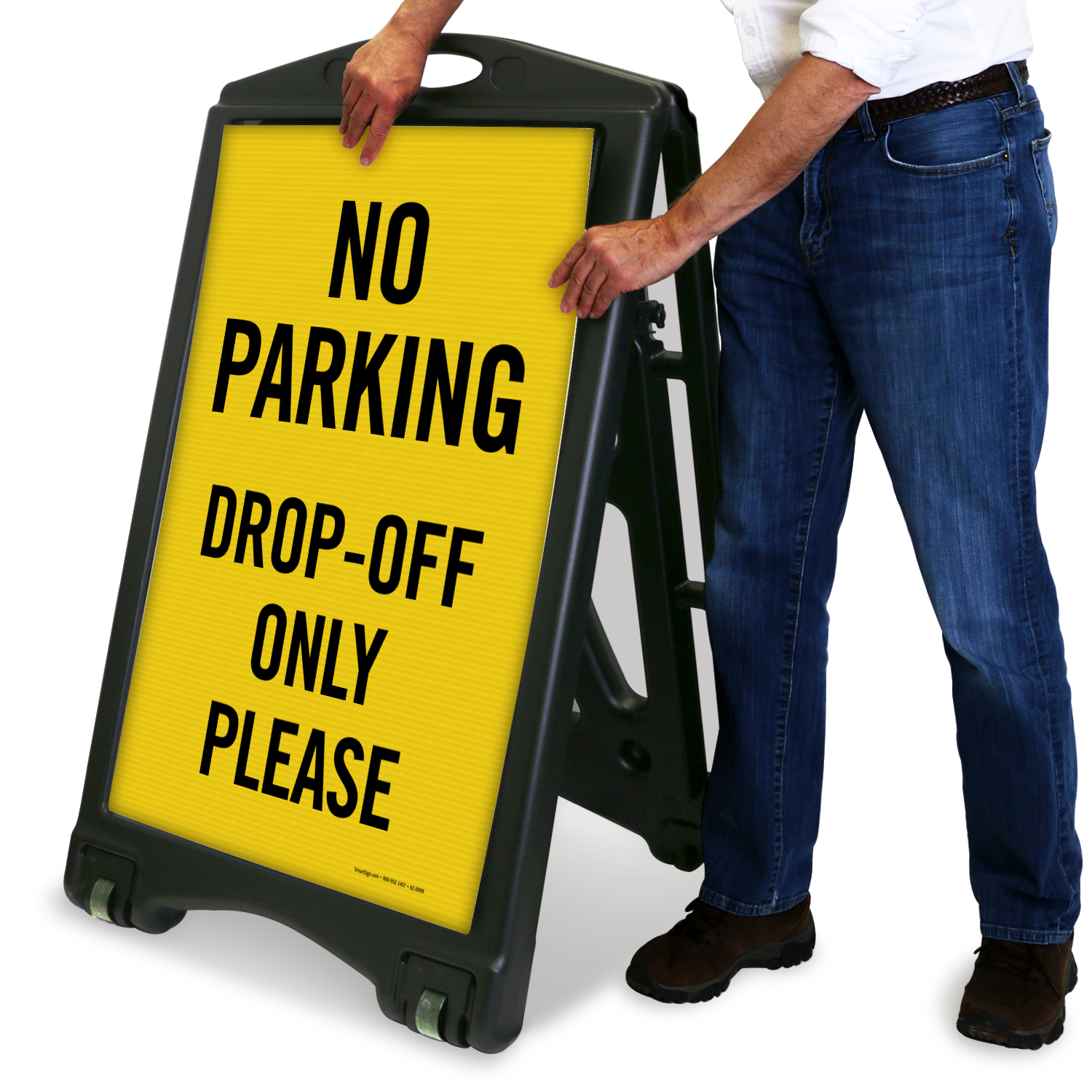 Prevent drivers from parking in drop off zones with this portable sidewalk sign. Sign comes in an easy-to-assemble kit.