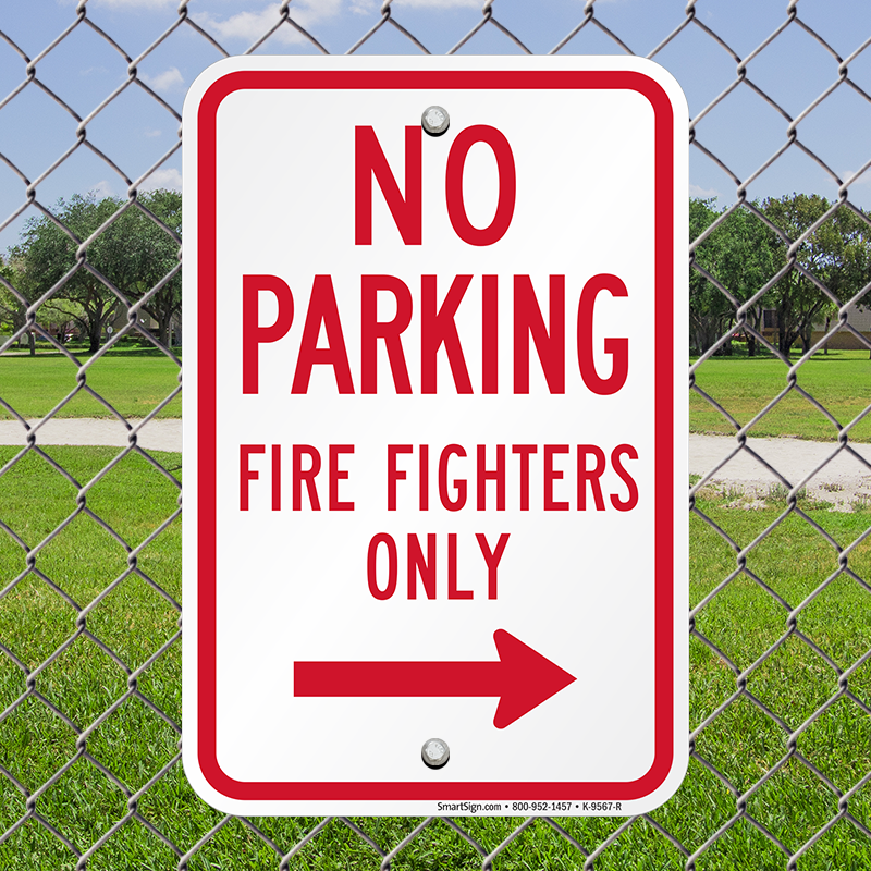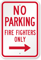 No Parking Sign: No Parking Firefighters Only (With Right Arrow) Learn More...