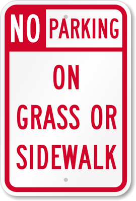 Sidewalks are for pedestrians. Remind drivers that there is no parking on the grass or sidewalk.