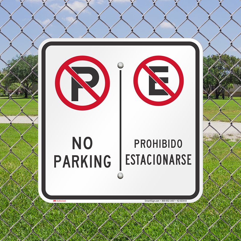 Bilingual No Parking Sign: No Parking - Prohibido Estacionarse (with Symbol) Learn More...