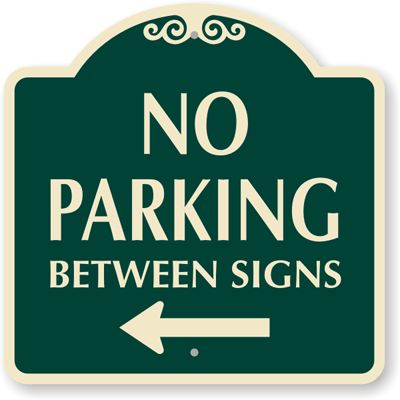 18" x 18" SignatureSign: No Parking Between Signs (with Left Arrow)