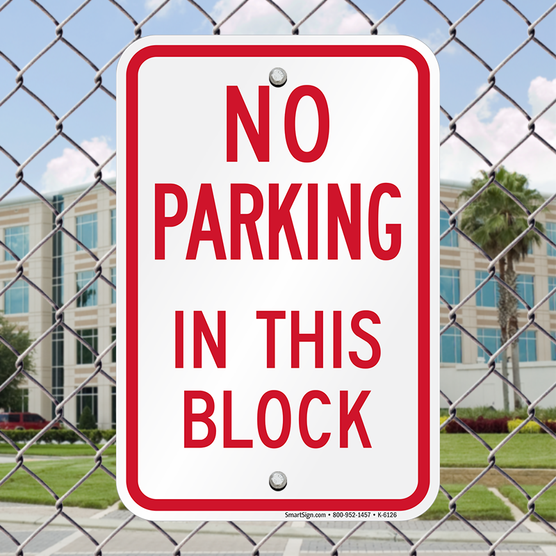 No Parking Sign: No Parking In This Block K-6126 Learn More...
