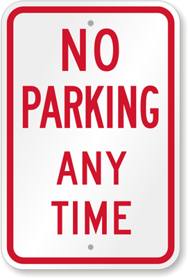Keep intruders out of prohibited parking spots with a No Parking Any Time Parking Sign.