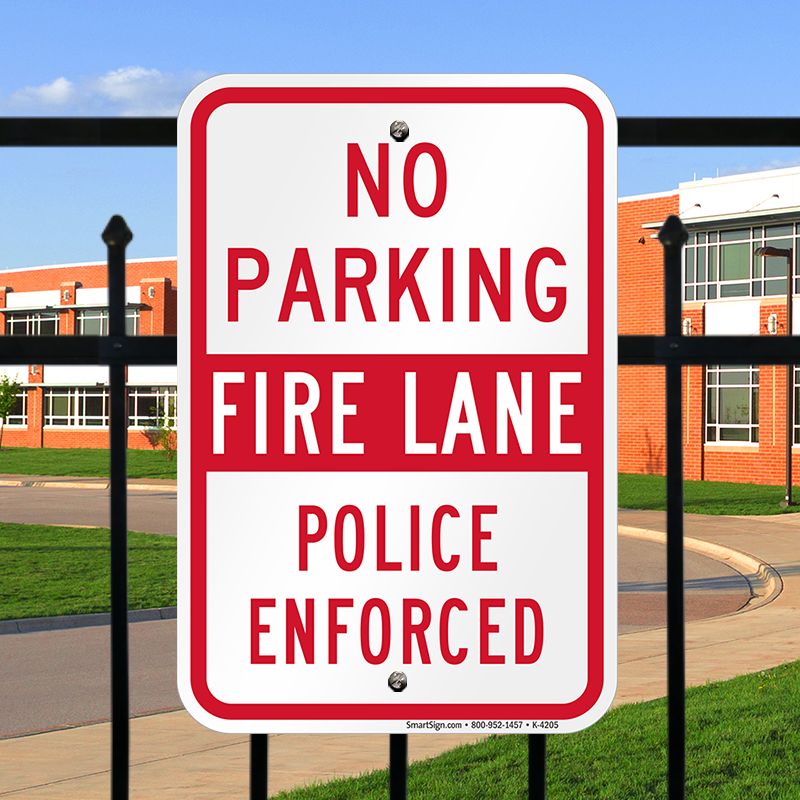 Fire Lane Sign: No Parking Fire Lane Police Enforced K-4205 Learn More...