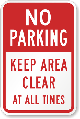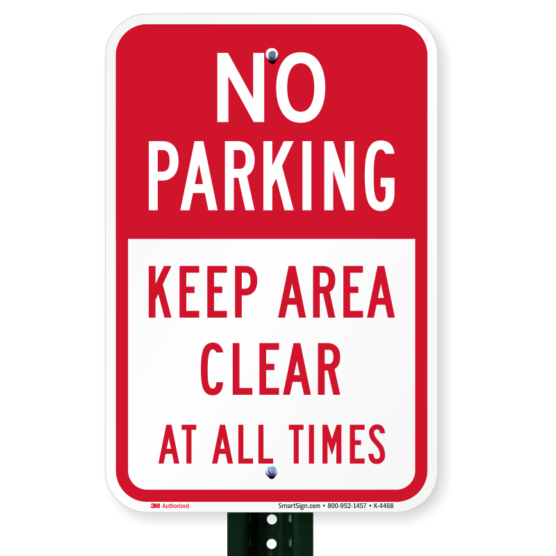 Parking Sign: No Parking Keep Area Clear At All Times K-4468 Learn More...