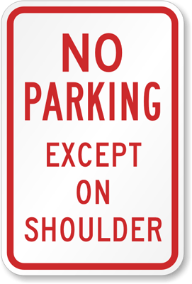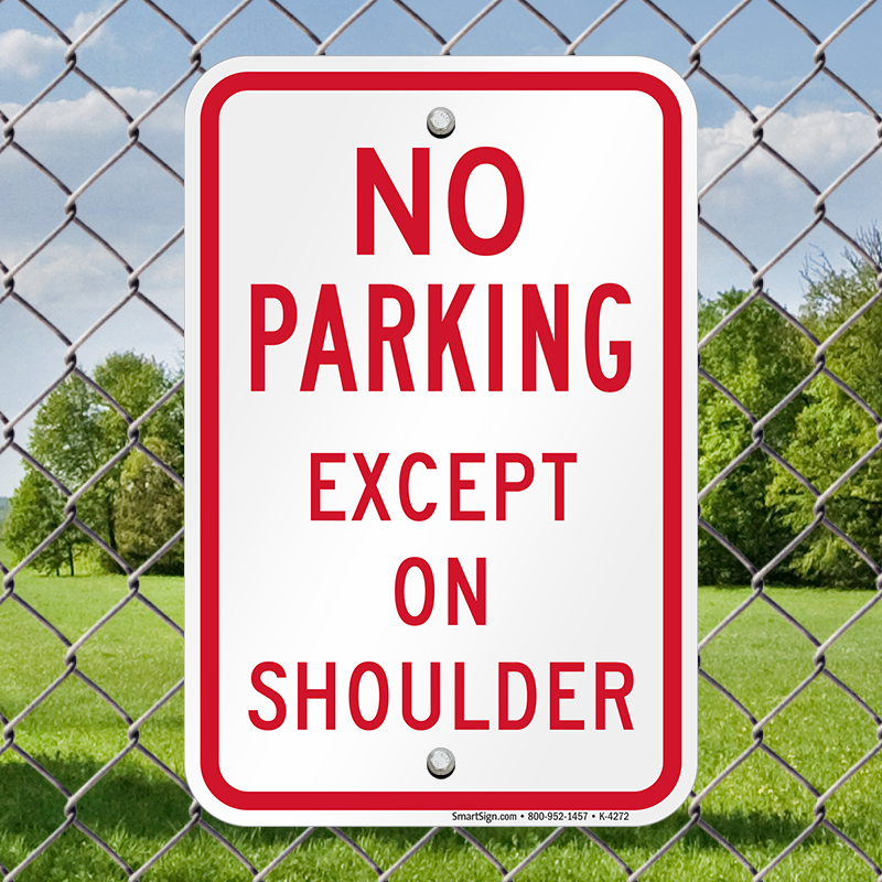 No Parking Sign: No Parking Except on Shoulder Parking Sign K-4272 Learn More...