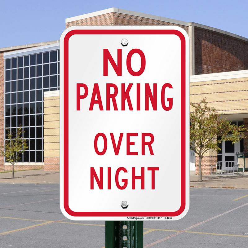 This No Overnight Parking sign is rust-proof and resists wear.