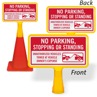 Display the double-sided printed sign on the traffic cone whenever required. At all other times, you can simply store the sign. No Parking, Stopping Or Standing ConeBoss Sign is easy to mount and dismount.