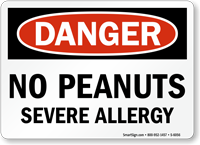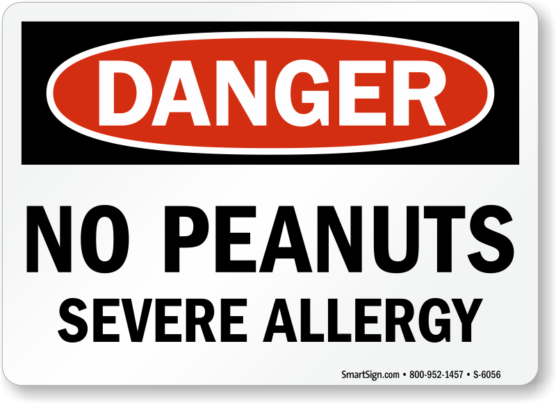 Peanut allergy is among the eight major food allergies in the US. Post a Danger No Peanut Sign to ensure no one brings peanuts in your facility.