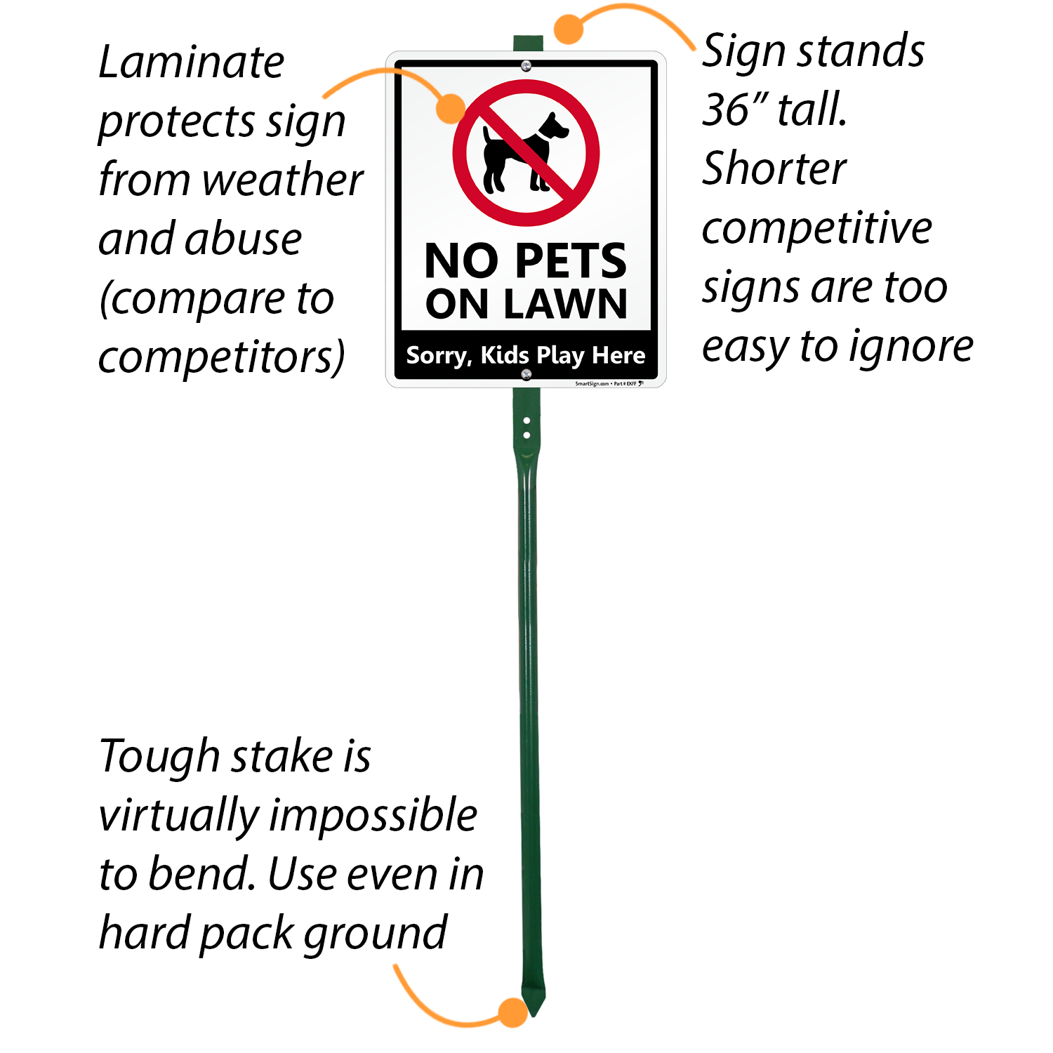 Size: 12" x 10" Material Type: Aluminum Sign & 3' Tall Stake Verified PurchaseNo pets on lawn sign