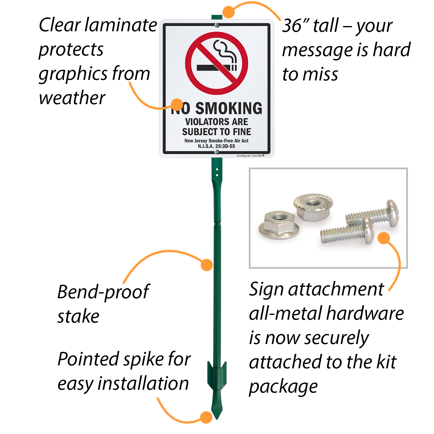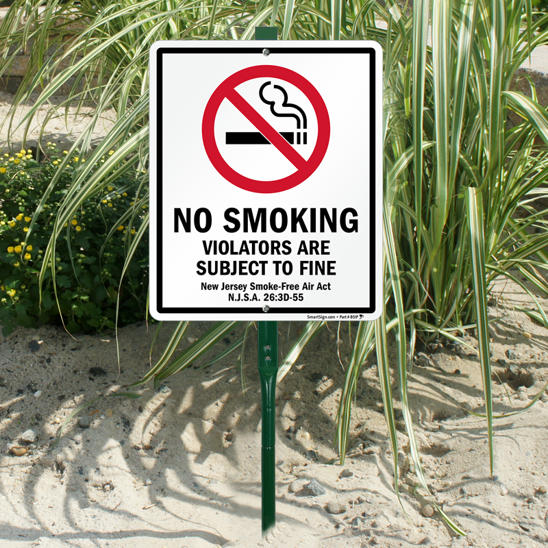 New Jersey No Smoking LawnBoss® Sign & Stake Kit: Violators Are Subject To Fine, New Jersey Smoke-Free Air Act N.J.S.A 26:3D-55 K-9489-NJ Learn More...