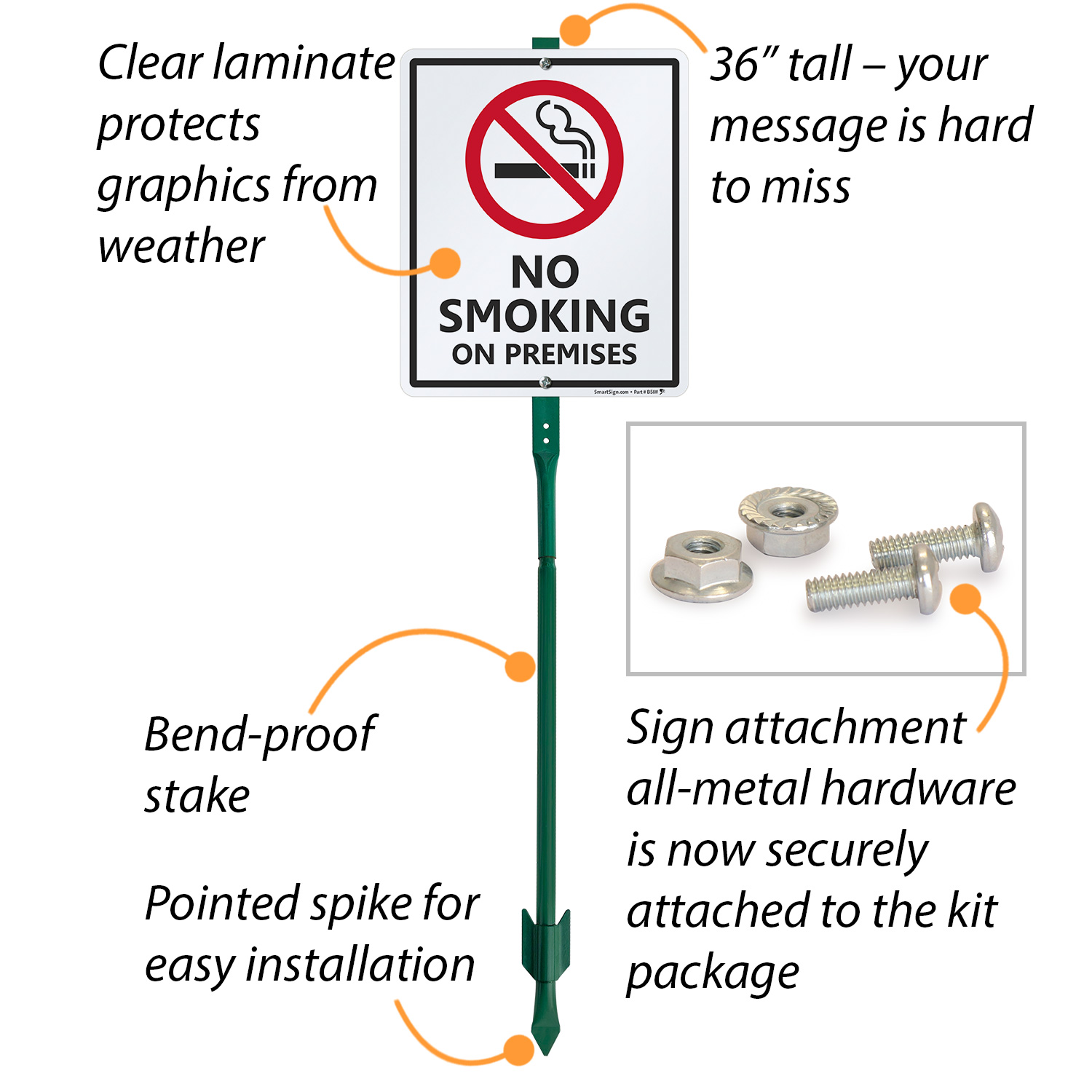 No Smoking LawnBoss® Sign & Stake Kit: No Smoking On Premises K-9683 Learn More...