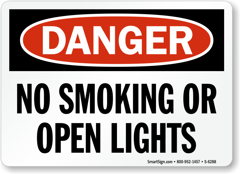 Even a minimum exposure to heat or flames in hazardous areas can cause fire. Enforce your 'no smoking or open lights' rule with this bold OSHA Danger Sign.