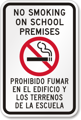 Bilingual Tobacco Free School Sign: No Smoking On School Premises / Prohibido Fumar En El Edificio Y Los Terrenos De La Escuela (English/Spanish) K-9841 Learn More...
