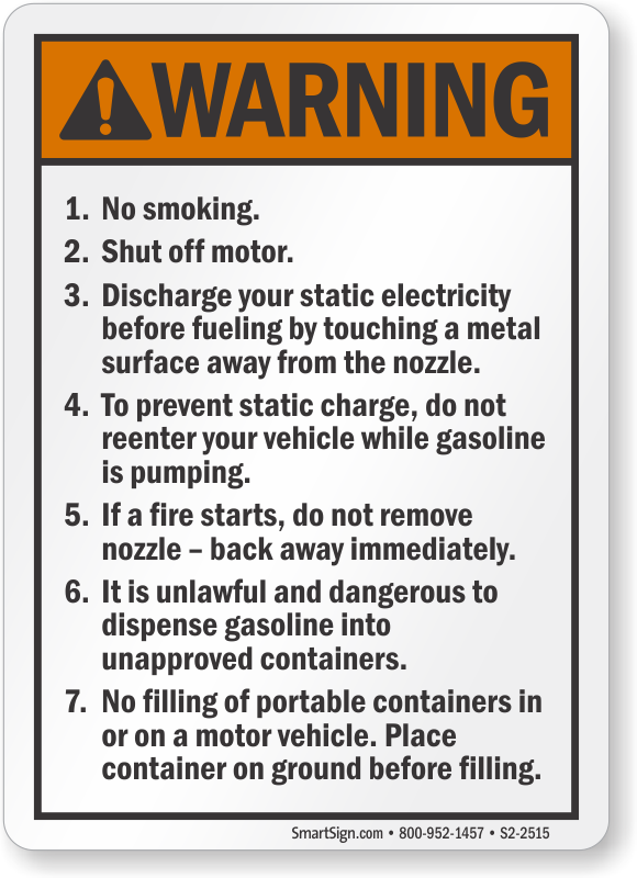This ANSI Warning Sign lists all safe operational requirements while motor fuel dispensing. The sign shall be conspicuously posted in the fuel dispensing area.