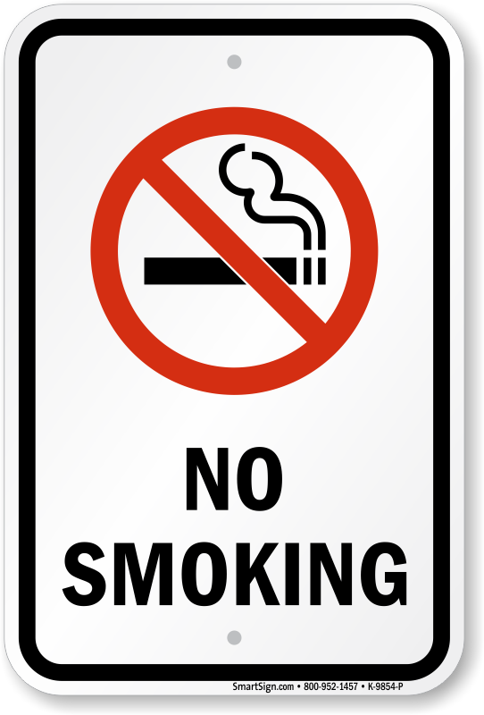 Simple and classy No Smoking Sign will increase adherence and keep your premises smoke-free! Easily recognizable no smoking symbol is clear.