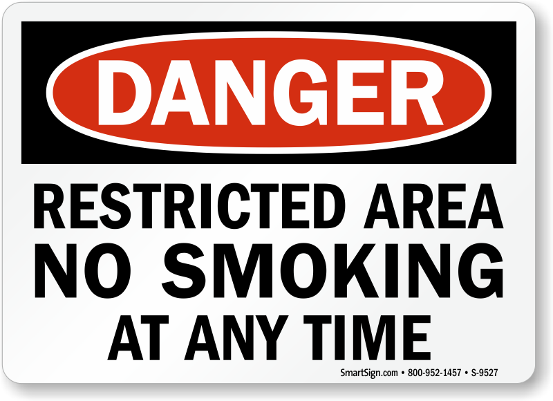 Danger Sign keeps staff and visitors away from restricted areas where smoking is prohibited.