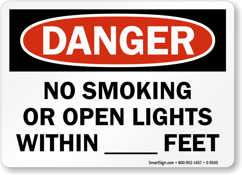 OSHA Danger Sign: No Smoking Or Open Lights Within ___ Feet S-9545