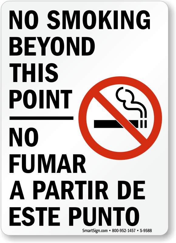 No Smoking Beyond This Point Bilingual Sign: No Fumar A Partir De Este Punto (with Symbol) S-9588