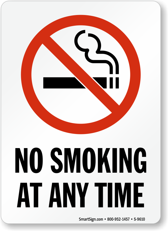 Smoking Prohibited Sign: No Smoking At Any Time (with symbol) - vertical S-9610
